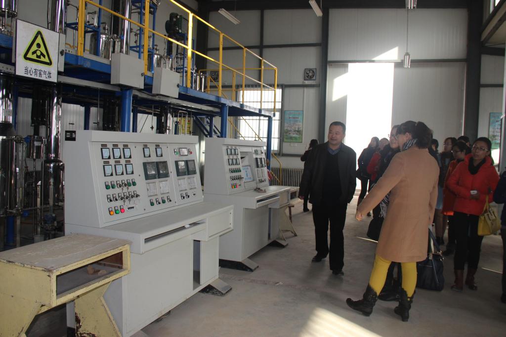 4日下午,教师队伍抵达延安职业技术学院,首先由化学化工系主任刘建成教授为大家展示了延安技术学院的全景模型,介绍了学院的整体概况。随后在刘主任、石油化工专业带头人徐仿海副主任陪同下,参观了化工实训中心,包括化工工艺实训室、化工单元实训室、化工仪表实训室、化工仿真实训室、化工模型室等,展示了各类化工实验装置、仪器设备和常见的设备模型,并由实训室老师为大家讲解各类设备仪器的运转原理。在观摩甲苯歧化实训车间过程中,各位老师一边观察整个车间的设备安装、流程走向,一边倾听老师讲解反应过程。在整个观摩过程中,双方老师就化工专业人才培养,课程教学,实习、实训组织等方面进行了广泛的交流。