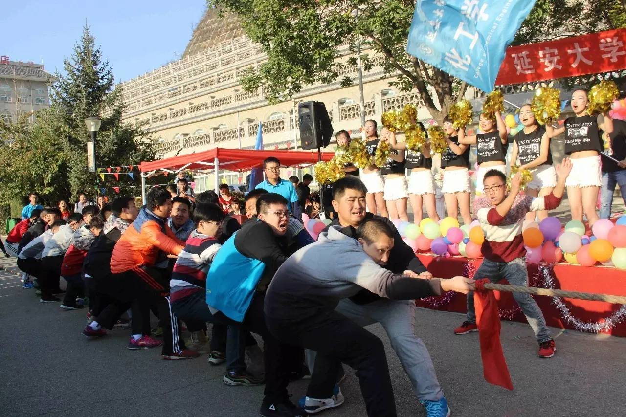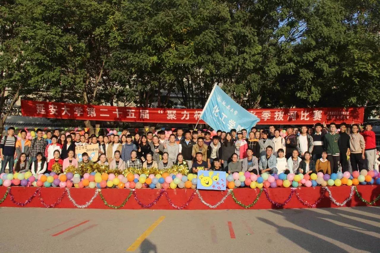 2016年11月5日上午,延安大学第二十五届“聚力杯”冬季拔河比赛在窑洞广场举行。此次比赛以院为单位,采取三局两胜晋级制,分为男子组、女子组以及男女混合组比赛。化工学院15级和16级的部分同学参加比赛,学院自主管理委员会负责安全保障、后勤服务、啦啦操等工作。