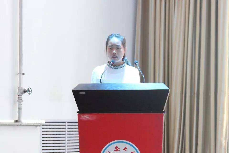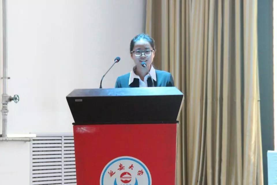 我院高年级代表应化14的刘咪,新生代表化工16的董夏昕先后做了发言,交流大学感想与经验。接着,院党委副书记刘雨录作入学教育报告,从五个具体方面为新同学指引了前进的道路。最后,院党委书记舒永安作总结讲话。舒书记首先让新同学明白了大学不是象牙塔和伊甸园,是个开放的平台。大家要树立两个奋斗目标,学知识和学做人。在延安大学这个大学堂,化工学院这个大家庭中,不忘初心,继续前进,做合格大学生。主持人团委书记韩盟最后以一首慷慨激昂的诗为本次典礼画上了一个完美的句号。