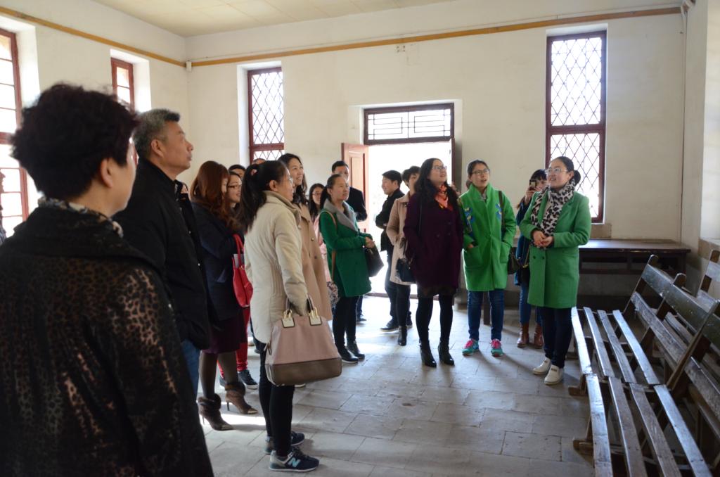 进入旧址,学院女教工和教工党员在申圆圆老师的解说下重温历史。一幅幅珍贵的照片、一件件朴素的文物、一段段感人的故事,使大家深刻领略了老一辈无产阶级革命家在任何条件下始终坚定政治方向、实事求是的革命精神和高尚情操,实实在在地体会到为人民服务是我党的根本宗旨,自力更生、艰苦奋斗是我们争取胜利的法宝。全体女教工在中央办公厅旧址齐唱《东方红》将活动推向了高潮。