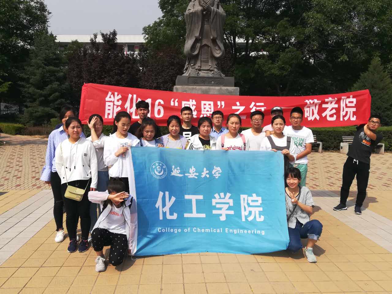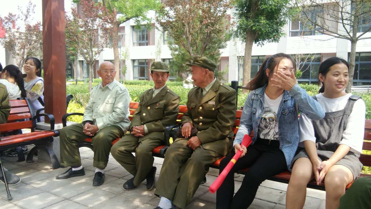 5月21日上午9:40,能化16全体同学在窑洞广场集合,搭乘公交车前往八一敬老院探望革命老兵。到敬老院时,老人们都在综合楼后的凉亭处乘凉。见到老人,同学们纷纷向老人问好,老人们也予以热情回应。同学们和老人们拉家常,听老人们讲述过去的经历,同学们看着老人们获得的勋章,仿佛回到曾经浴血奋战的场景