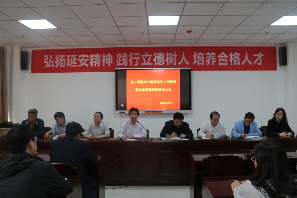为了加强研究生的教育与管理,9月27日下午,化工学院在院第一会议室召开2017级研究生入学教育暨学术道德建设促进大会。教务处处长付峰、院领导班子全体成员、研究生导师、研究生管理人员及2017级的29名研究生参加了会议。会议由研究生助理魏清渤主持。