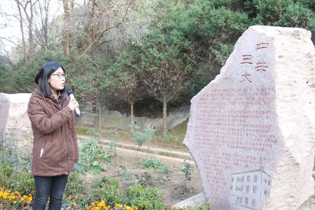 首先,一行人随申圆圆来到六块石碑前,学生代表熊东、张美琪、杨玮洁、许王震、吕扬以及研究生代表杨娇莉同志分别为大家介绍并传达了从中共一大到中共六大的历史背景和会议精神,仔细领悟讲解内容,我们仿佛回到了充满着奋斗气息的红色年代,深刻体会到先辈们为了建设富强的新中国砥砺前行,艰苦奋斗的精神。