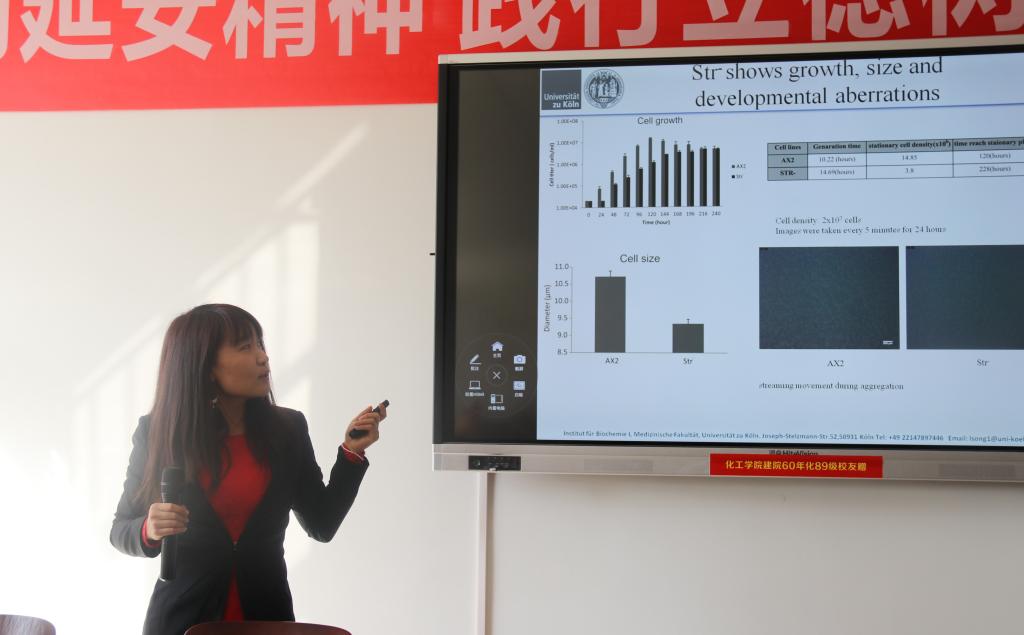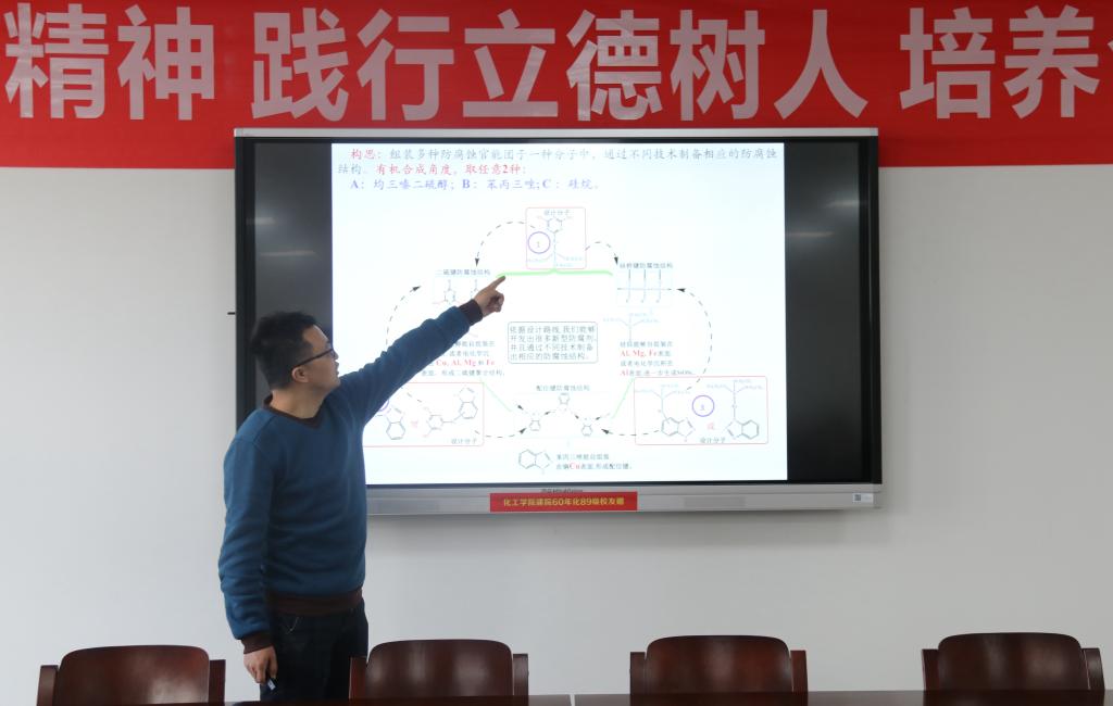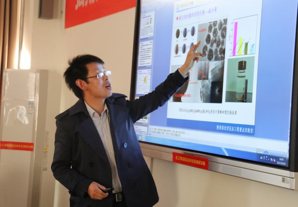 学术交流会期间,梁玉仓博士、王达博士、宋琳博士、郑凯博士,以及化工学院青年教师王丹军教授、田锐博士、王亚斌博士、吕海明博士分别为做了题为“Synthesis of Hexagonal Zinc Oxide Nanoprisms and Zinc-Vacancy-Induced Single-Photo Emission”,“Cellular Effect and Biomimetic Properties in vitro of Novel 4,5-Dialkylated Imidazolium NHC Salts”,“Functional Analysis of Wild-Type and N471D Strumpellinin Hereditary Spastic Paraplegia”,“纳米生物活性玻璃在组织修复中的应用”,“Bi基催化材料的构筑及应用”,“多孔结构二氧化硅纳米粒子的合成及其荧光分析特性研究”,“铜表面均三嗪二硫醇硅烷聚合纳米薄膜的制备及应用”,“光热调控纳米材料的制备及器件组装”的的学术报告,展示了他们在攻读博士和工作期间卓越的研究成果和前沿的思想理念。