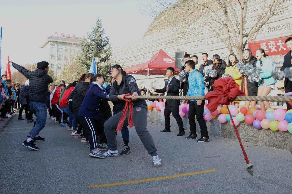 2017年11月25日早8时,由校团委、校学生自主管理委员会联合举办的延安大学第26届“聚力杯”冬季拔河比赛在窑洞广场拉开序幕,化工学院2017级学生代表队参加了本次比赛。
