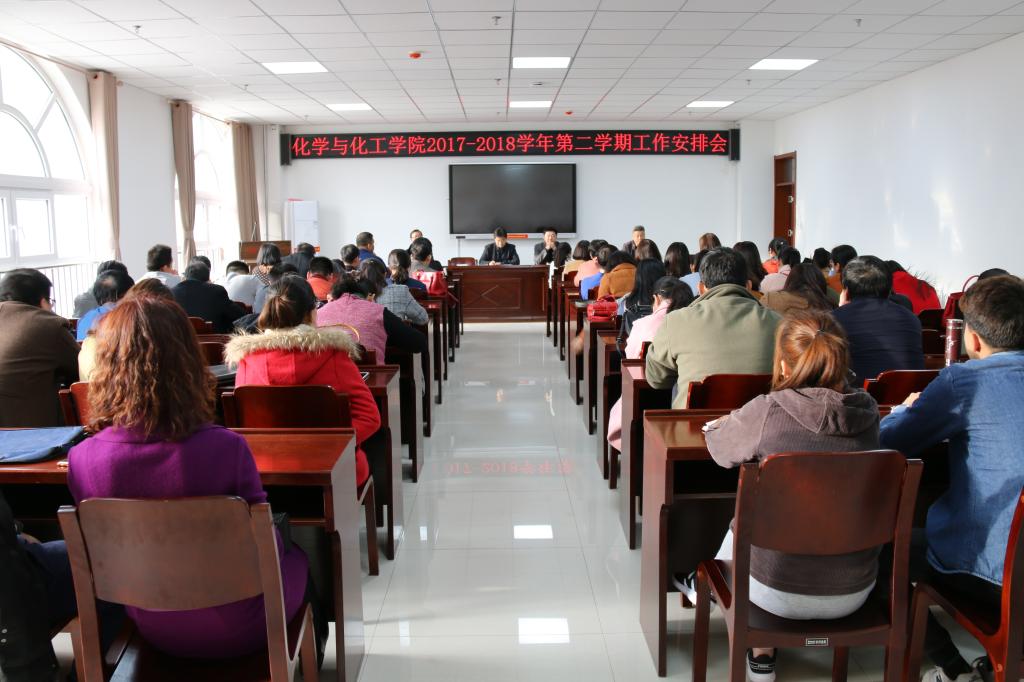 2018年3月4日16:30,化学与化工学院于能源化工大楼216会议室召开“化学与化工学院2017—2018学年第二学期工作安排会”,与会人员有党委书记舒永安、院长张琰图、党委副书记刘雨录、副院长王记江以及学院全体教职工,会议由院长张琰图主持。