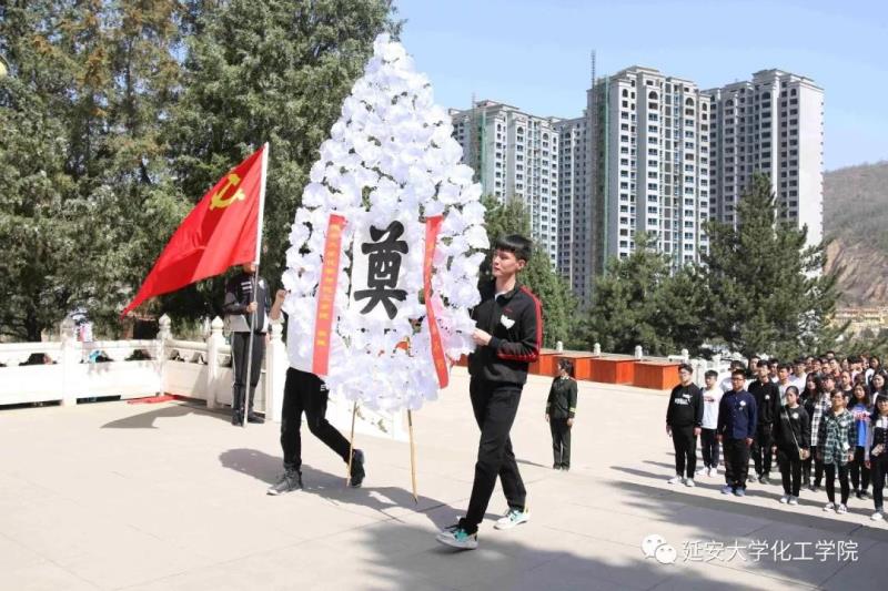为缅怀革命先烈,坚定理想信念,弘扬民族精神,2018年4月2日早上10时,在院党委副书记刘雨录、辅导员徐菁、张哲豪的带领下,学院学生党员、第五十二期入党积极分子、能化17与应化17共130余人徒步前往延安“四八”烈士陵园开展以“缅怀先烈,坚定信仰,祭奠英灵,发扬传统”为主题的清明节祭奠革命英烈主题活动,本次活动由刘欢同学主持。