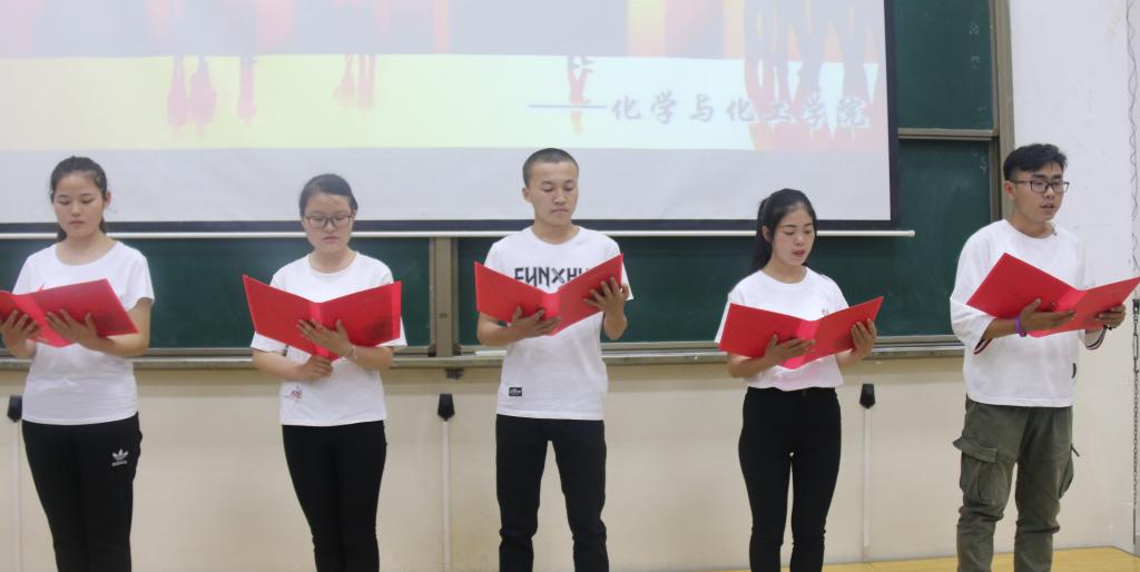 比赛休息期间,我院圣地元素朗诵团带来配乐朗诵——习近平总书记两会讲话选段。