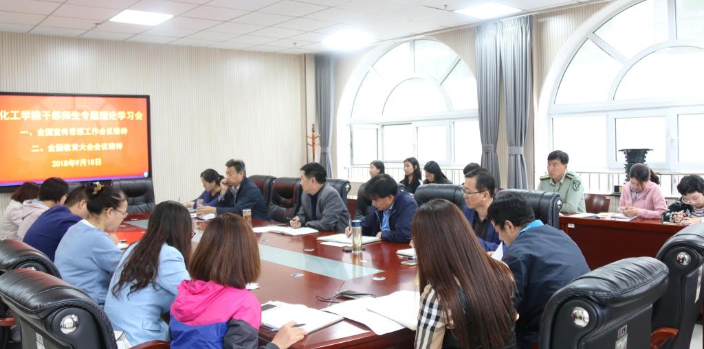 9月18日下午,化工学院党委在能源化工大楼215会议室召开干部师生专题理论学习会。专题学习全国宣传思想工作会议及全国教育大会会议精神。学院科级以上干部、各系主任、各党支部书记、全体辅导员、院机关工作人员及研究生代表、本科生代表共24人参加了学习会。会议由院党委书记舒永安书记主持。