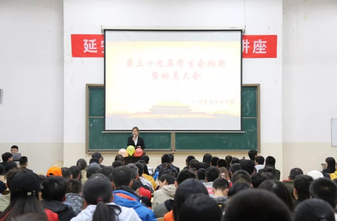 2018年10月17日19:00化学与化工学院第三十九届学生会纳新暨动员大会在玉章楼第六阶梯教室举行。与会人员有辅导员张哲豪,学生自主管理委员会、新闻中心、心理工作站的相关工作者以及2018级全体新生,会议由胡晓蕾主持。