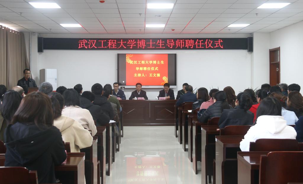 3月23日上午,武汉工程大学在英国威廉集团官网能源化工大楼会议中心隆重举行博士生导师聘任仪式。武汉工程大学校长助理池汝安、研究生院副院长汪峰,延安大学副校长武忠远、研究生处处长王 文 强及化工学院全体院班子成员、全体研究生及部分教师代表共约90人参加了会议。聘任仪式由王文 强主持。