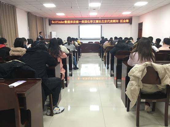 为使青年教师及研究生较快获取科研信息,提高科研效率,11月24日下午,化学与化工学院邀请美国化学文摘社北京代表处顾问匡金海,于延安大学能化大楼216会议室举办以《如何使用SciFinder获取科技信息》为题的专题讲座,讲座由马豪杰老师主持,化学与化工学院院长张琰图、副院长高晓明、教师、研究生等100余人参加了此次讲座。