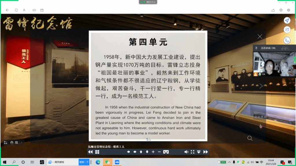 首先,各班团支书带领全体同学进行了云参观雷锋展馆,重温了雷锋的故事。以3D全景影音进行沉浸式学习,吸取榜样的力量,让雷锋的精神在延大学子之间薪火相传。 营造“人人学雷锋,天天学雷锋”的良好氛围。