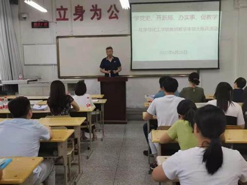 6月27-28日,化学与化工学院在杨家岭校区敷仁楼1203教室举行“学党史、开新局、办实事、促教学”——教师教学本领大练兵活动。