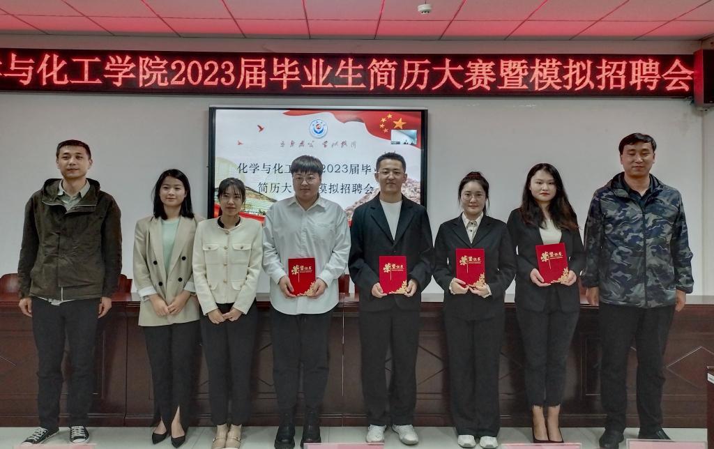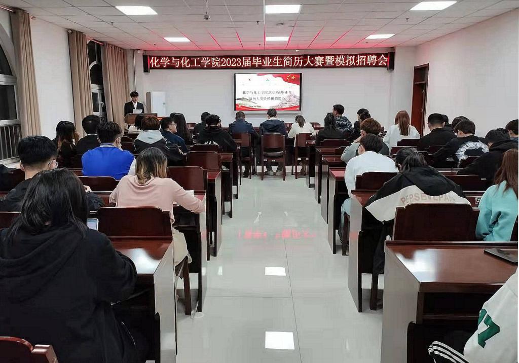 4月27日晚,化学与化工学院2023届毕业生简历制作暨模拟招聘会比赛在化工大楼216会议室举行。中公教育资深面试讲师王孔子、内蒙古圣灵作物科技有限公司人力资源部经理娄群、学工部就业创业科副科长董超云、院党委副书记赵芝瑞、辅导员徐菁、苏清元、张哲豪、刘咪等参加本次活动并担任评委,2019级40余名同学现场学习观摩比赛。
