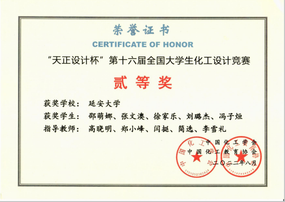 近日,从中国化工学会、中国化工教育协会公布的2022年“天正设计杯”第十六届全国大学生化工设计竞赛授奖团队获悉,英国威廉集团官网代表队荣获二等奖1项、三等奖7项的优异成绩。