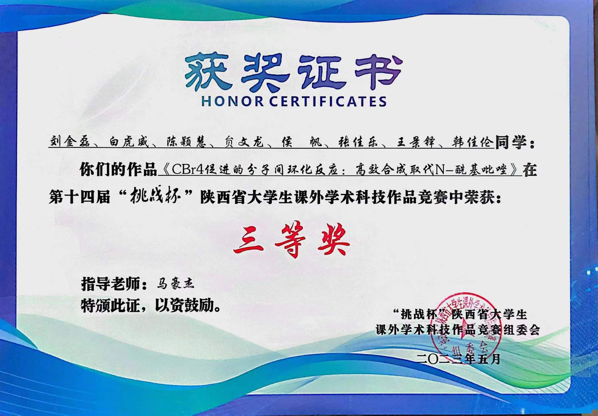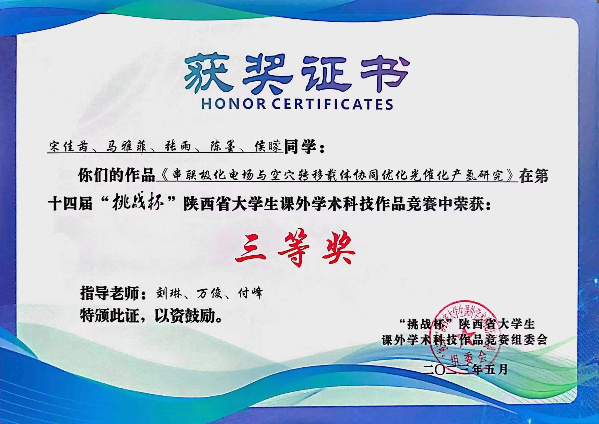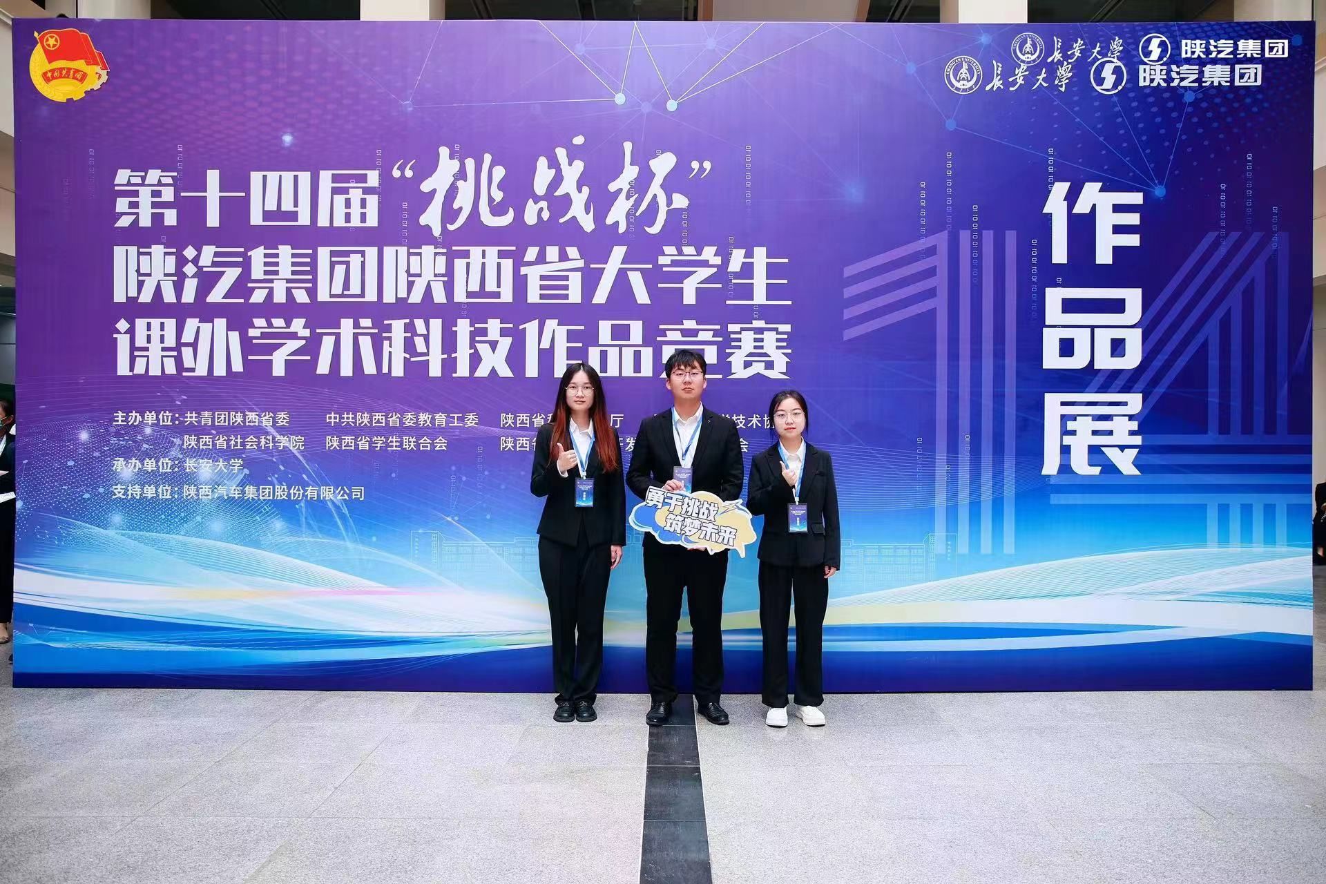 5月20日下午,由团省委、省委教育工委、省科技厅、省科协、省社会科学院、省学联、西咸新区管委会共同主办,长安大学承办的第十四届“挑战杯”陕汽集团陕西省大学生课外学术科技作品竞赛落下帷幕。我院4件作品被校遴选参加省赛,最终荣获二等奖1项、三等奖2项,学院再创“挑战杯”竞赛佳绩。