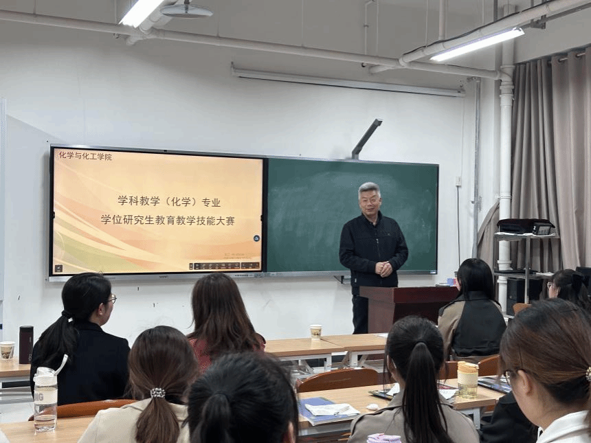 为进一步提高专业研究生的教学实践和创新能力,搭建“以赛促学,以赛促教”的平台。10月20日下午,学院在化工大楼706教室举办2023年学科教学(化学)专业学位研究生教学技能大赛。本届大赛特邀请我院优秀毕业生宋亚丹、王雪侠和郭欣等3位中学化学教师担任大赛评委。