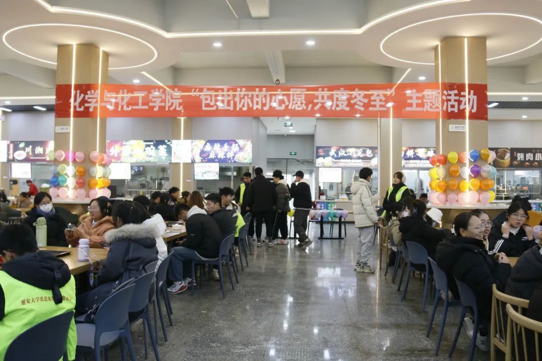 为传承中华优秀传统文化习俗,丰富同学们的校园生活,让同学们在冬至这个特殊的日子里更好的感受校园的温暖,2023年12月22日下午化学与化工学院于第二餐厅举办"包出你的心愿,共度欢乐冬至"题活动。院党委副书记赵芝瑞、组织员徐菁、辅导员苏清元、院团委书记张哲豪及学生会全体成员参与了本次活动。