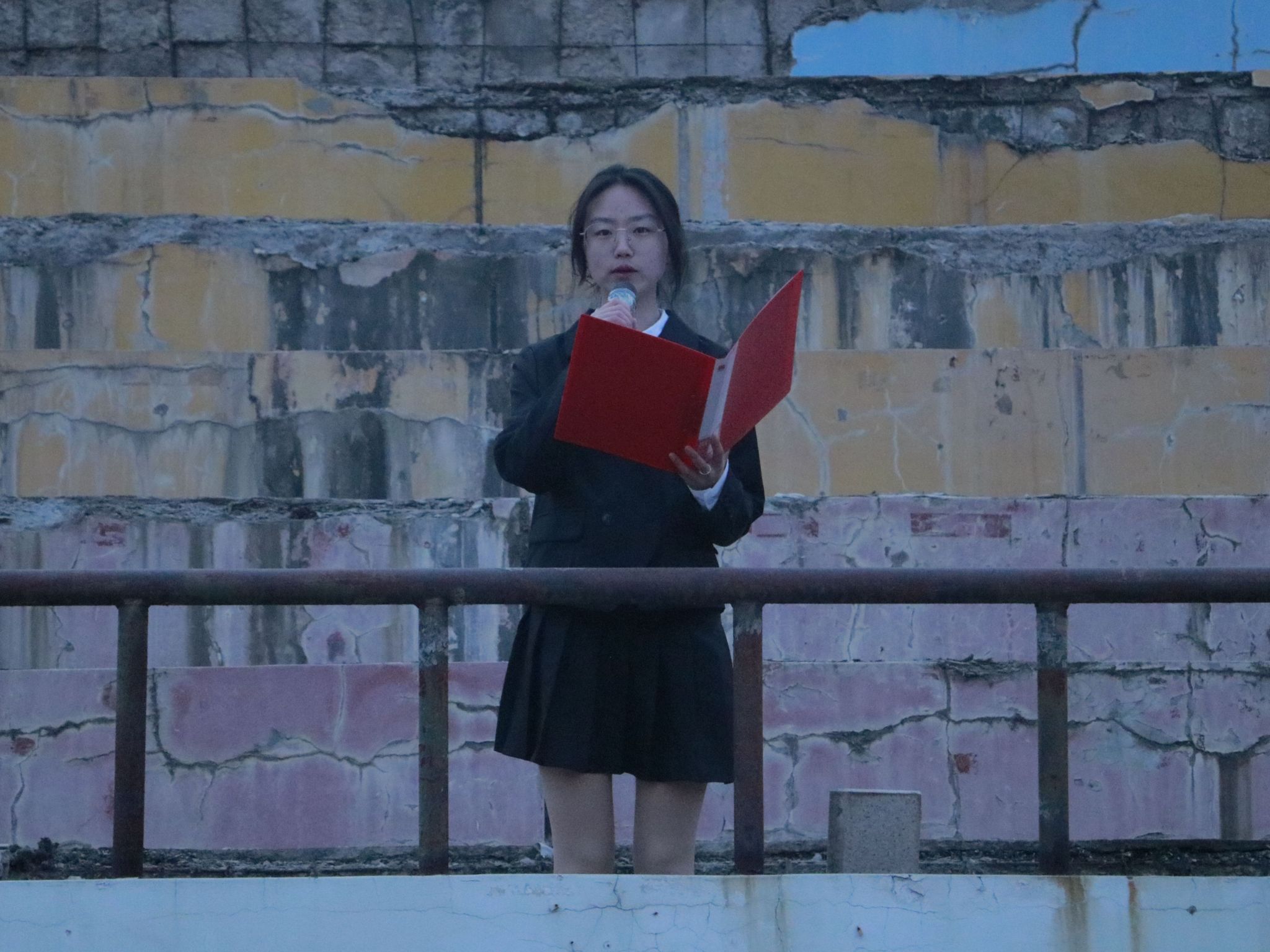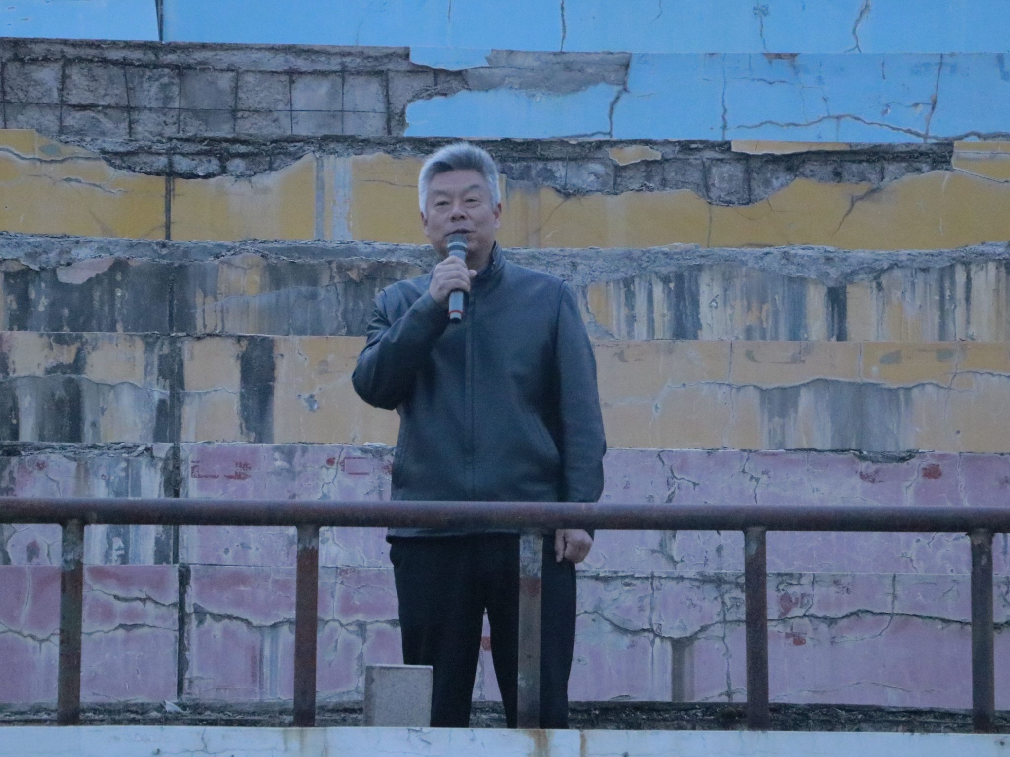 最后,全体人员合唱《没有共产党就没有新中国》,铿锵嘹亮的歌声响彻整个田径场。
