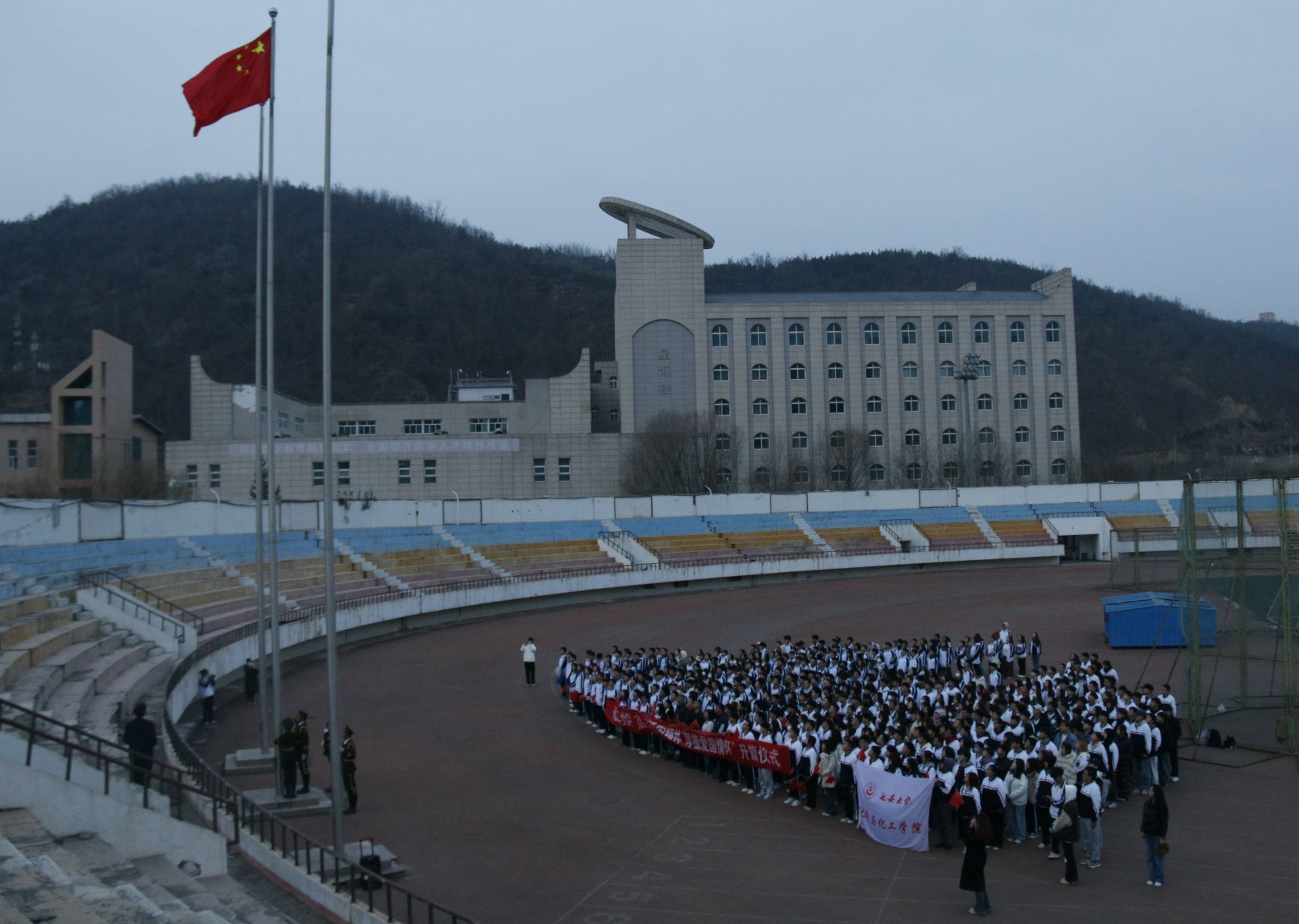 3月18日早上,化学与化工学院在杨家岭校区田径场举行“弘扬延安精神,厚植爱国情怀”为主题升国旗活动。学院党委书记刘雨录、思政专员李学周、党委副书记赵芝瑞、全体辅导员以及2022、2023级全体学生参加了本次活动。