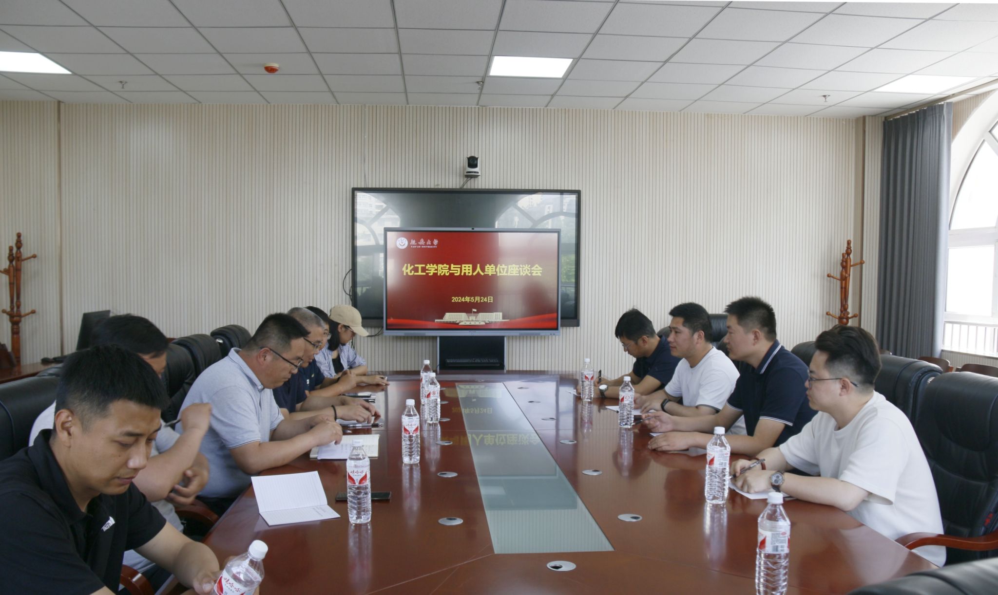 5月24日上午,化工学院与用人单位在学院215会议室召开座谈会。新疆圣雄能源股份有限公司、新疆心连心化学工业有限公司、陕西创铭能源有限公司、陕西青域医学科技有限公司等四家用人单位负责人,学院思政专员李学周、党委副书记赵芝瑞、学生处教育管理科科长董超云及全体辅导员参加了座谈会。赵芝瑞副书记主持座谈会。