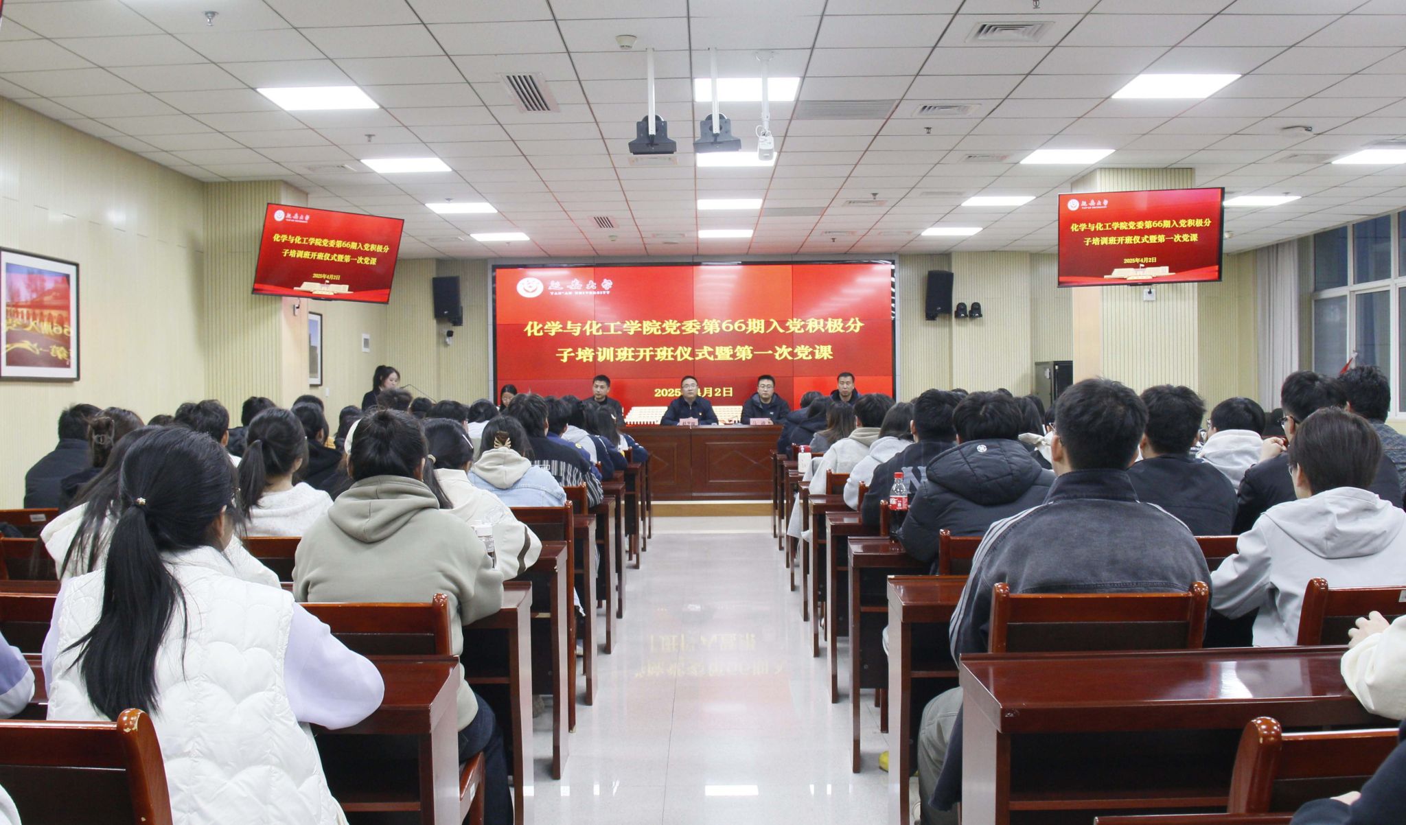 4月2日,化学与化工学院党委第66期入党积极分子培训开班仪式在延安大学杨家岭校区图书楼第九会议室里隆重举行,学院党委书记赵芝瑞、党委副书记马涛、团委书记张哲豪、辅导员苏清元、刘咪以及85名怀揣着赤诚之心的入党积极分子共同出席了本次活动。