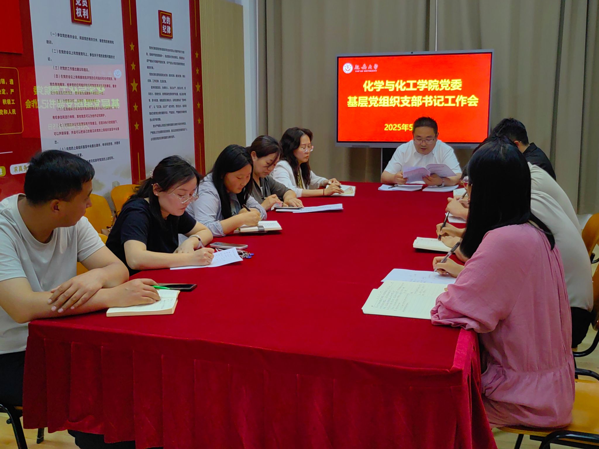 5月15日下午,化学与化工学院党委在化工大楼1020党员活动室召开了支部书记工作会议。学院党委副书记、各党支部书记等10人参加了本次会议。院党委书记赵芝瑞主持会议并对近期党建重点工作进行了全面部署。