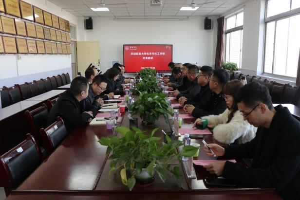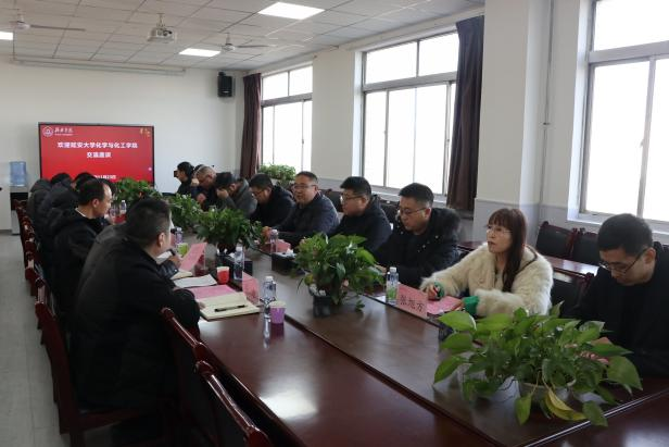 为深化校际合作,推进学科建设与人才培养工作,11月23日上午,学院党委书记赵芝瑞、院长甄延忠一行10人赴榆林学院化学与化工学院开展调研交流。调研座谈会在榆林学院4号教学楼502会议室召开,会议由榆林学院化学与化工学院党总支书记陈小辉主持。
