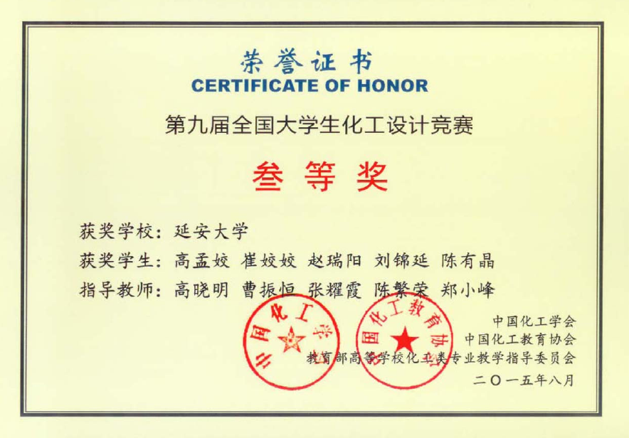 上一条:第九届全国大学生化工设计竞赛二等奖