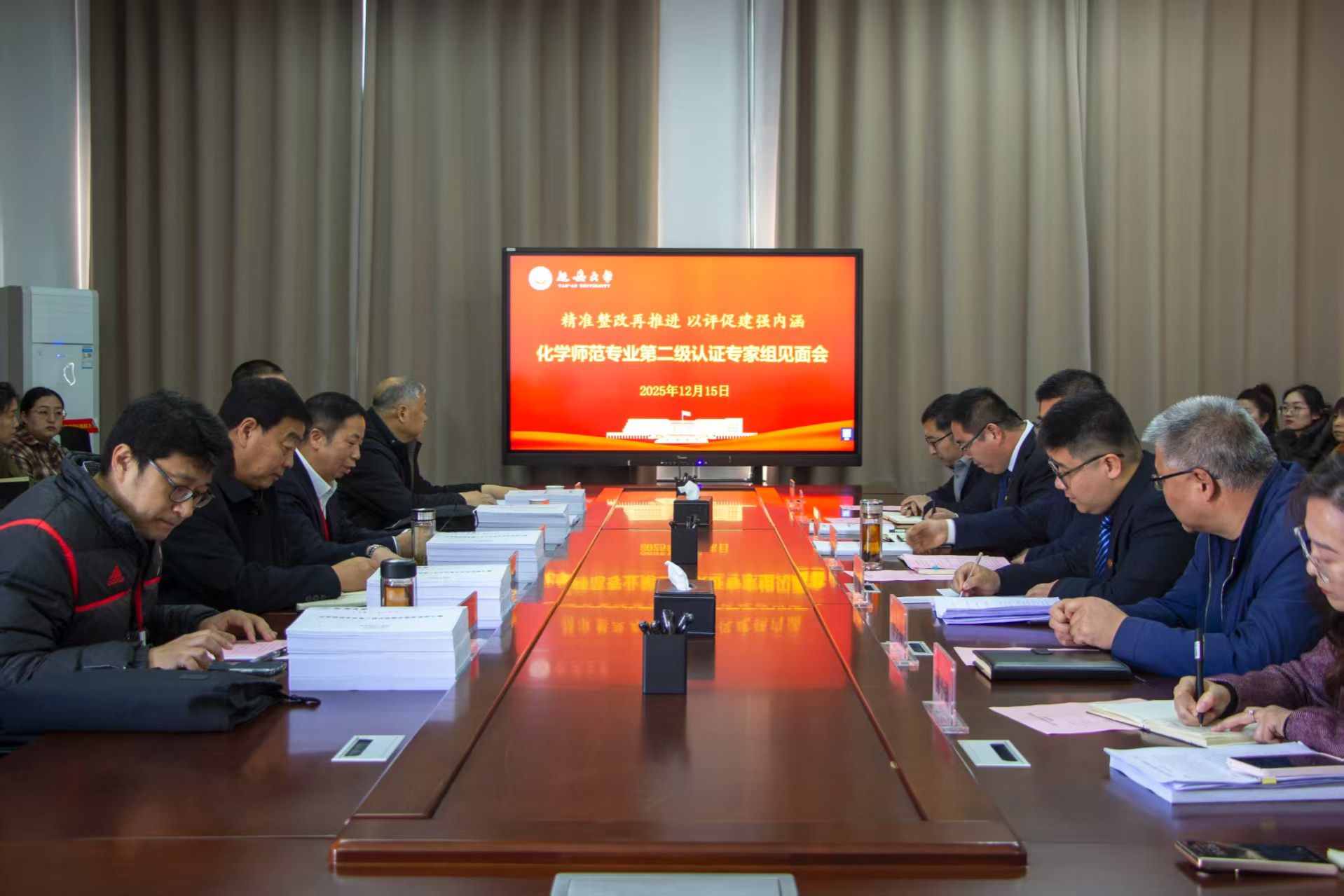 12月15日上午,专家组现场考查见面会在学院1019会议室召开。学院全体领导班子成员、教学秘书、实验秘书、教务员、辅导员和化学系全体教师50余人参加会议。会上,院长甄延忠从学院及专业概况、自评报告补充说明、持续改进三个方面向专家组作化学师范专业第二级认证补充汇报。随后,专家组聚焦化学专业的毕业要求达成评价机制、课程体系支撑合理性、教育实践质量保障等核心环节,进行了现场循证质询。针对专家提出的各项问题,学院领导、相关负责教师逐一作出答复,并表示后续将以此次专业认证为契机,进一步完善人才培养体系、强化课程质量保障、深化校地协同育人,推动化学专业建设向更高标准、更高质量迈进。会议由专家组组长谭长银教授主持。