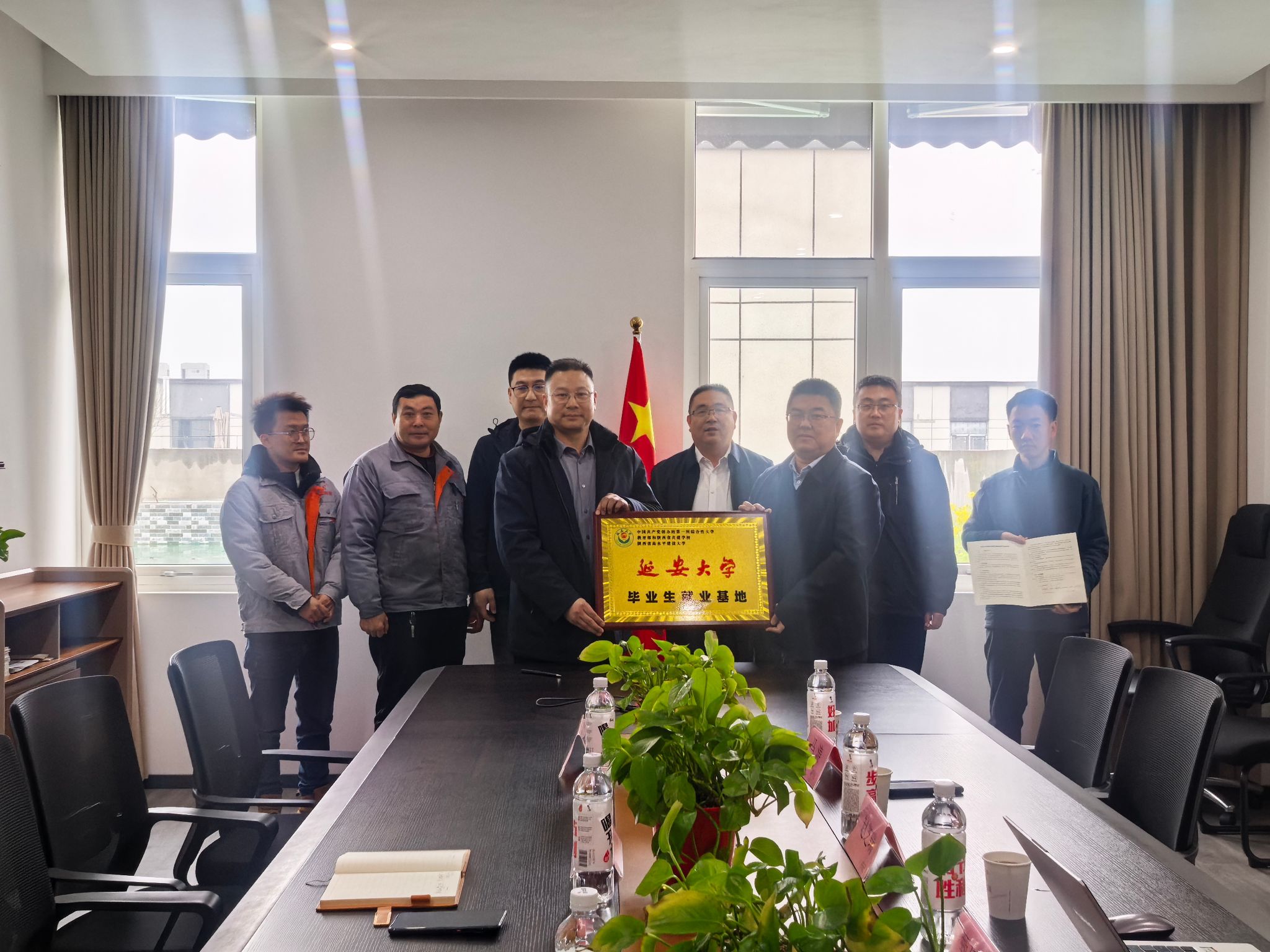 随后,赵芝瑞书记与董事长程维强分别代表校企双方共同签订了《延安大学实习就业基地合作协议》,甄延忠院长为“延安大学毕业生就业基地”揭牌。根据协议,双方将在学生实习实训、就业岗位拓展、科研项目攻关等方面开展实质性合作,共同构建协同育人长效机制。